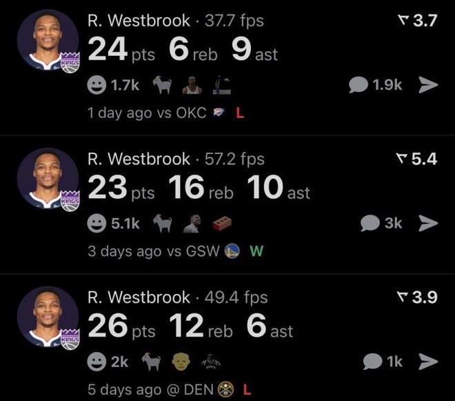 今日国王面对森林狼的比赛,球队遭遇了27分的惊天大败,而这场球威少又被从首发踢到了替补席上,全场7中2只拿到了6分1助攻。而前三场比赛的威少首发时打得是非常非常出色的,三场先发得分全部20加,并且有一场大三双,面对勇士23分16篮板10助攻。